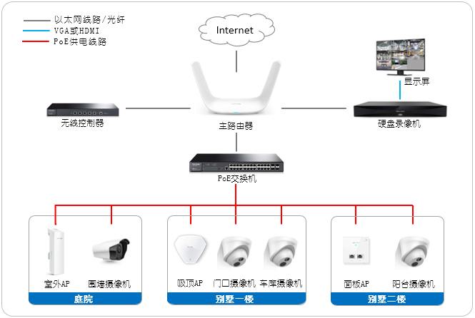 庭院和别墅内实现全方位无线覆盖,支持无线漫游;