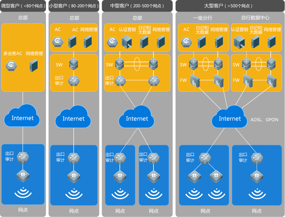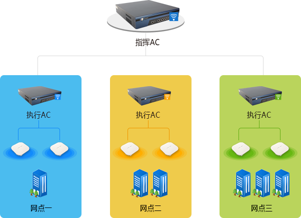 总行/分行部署AC,支行网点部署AP,统一组网,集中管理;