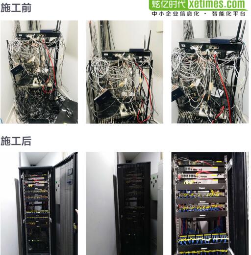 布线完成后就是割接工作了,这是网络改造中最关键的一步,工程师们凭借多年的施工经验,快速且精准的完成了割接工作并把新设备放置到准备好的机柜中。机柜上整整齐齐的线路与施工前的机柜形成了鲜明对比。