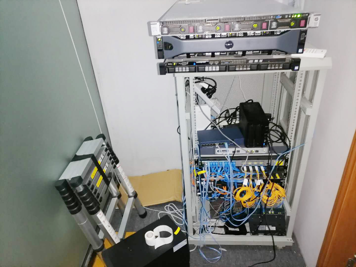 首先,根据需求增设机柜,对设备下架,将所有空间都空出来,然后根据之前的设计,一步步放置设备,连接线路。