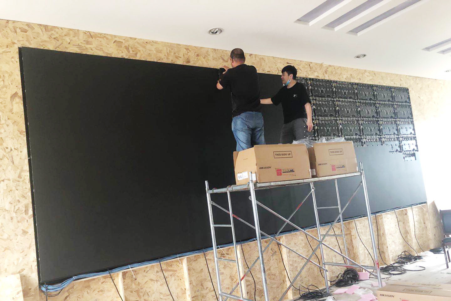 运城市尊村引黄灌溉服务中心表示LED高清显示屏必须依托坚固墙体支撑,所以要求此次视频会议系统安装工程需要对墙体进行加固装修。工程师通过现场勘测及规划,对墙体进行了专业加固,更为打造会议室新环境,奠定了坚实基础。