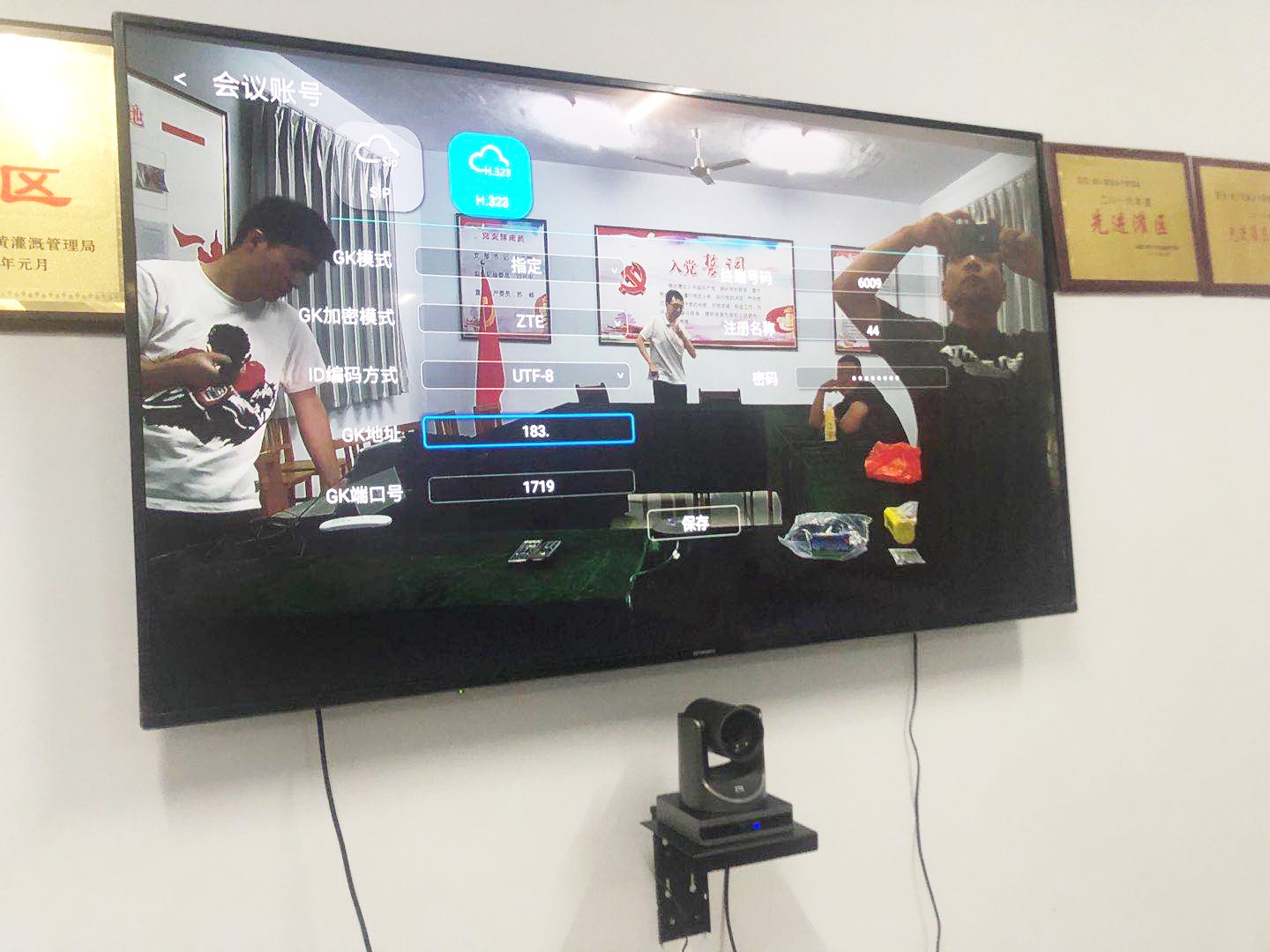 运城市尊村引黄灌溉服务中心主会场视频会议系统部署完成后效果图