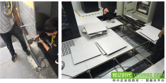 在机房布线时是通过地板下来走线的,但因为地板之间没有空隙,就需要工程师自行将静电地板切个洞,然后把线从洞里穿到地板下,这样既不影响美观也不影响机器的使用。