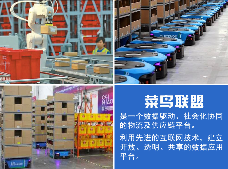 菜鸟物流的仓储配送,是依托阿里大数据统计地域的买家喜好,在双11前将产品入库,待双11当天买家下单付款后,天猫订单直接转给菜鸟物流,库房连接WiFi的机器人进行核对信息、分拣产品、打包包裹、分发运输。