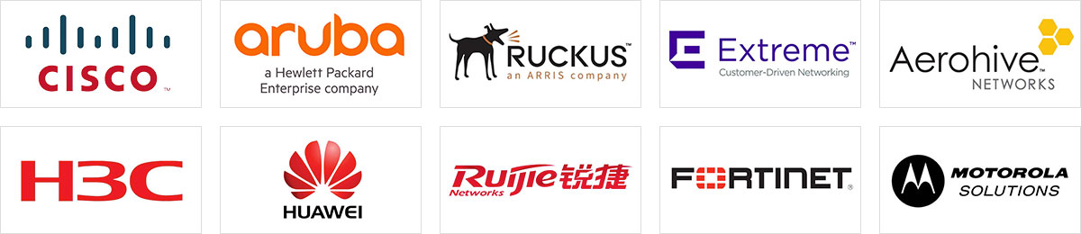 全面兼容主流网络设备厂商,对接cisco,ruckus,华为,华三,锐捷等厂商有线无线设备。
