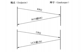 端点等级必须根据网守的RAS地址向其发送RRQ消息,消息包含着端点别名及其信令传输层地址。别名分别为E.164地址,E.164地址可由接入码和电话号码组成,该接入码可以用来标识网关。