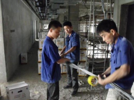 (4)预留信息插座底插座时,在分线管入口处套上橡胶保护套或磨去接口处的快口,保证水平线引进时不被入口处的快口损伤。