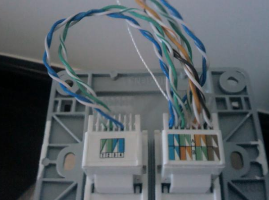 (3)端接超五类信息插座时,超五类线剥头露出外皮距离要尽量短,并需要顺其绞和方向多转一周,以确保端接时不破坏超五类线绞和度,以致影响其超五类传输标准。