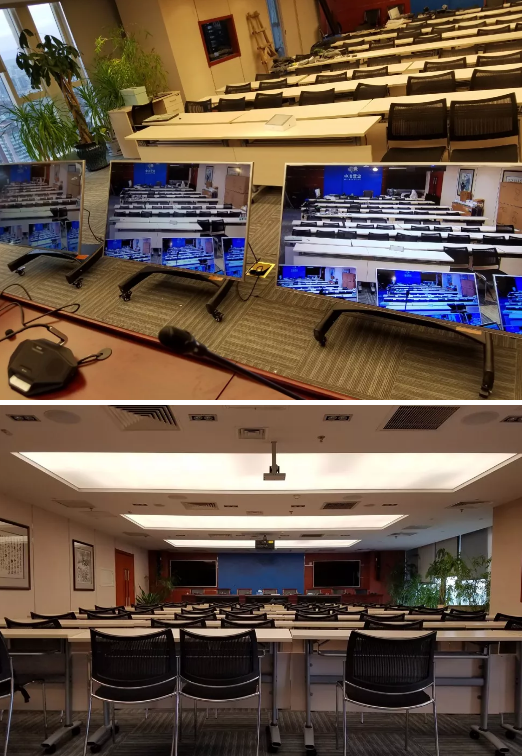 多功能厅主要采用的是宝利通550视频会议终端、DP高清投影仪以及EXtron高清混合矩阵,并配备三星的4K分辨率高清显示器。其他还有音、视频系统的建设,数字会议系统的建设等等。