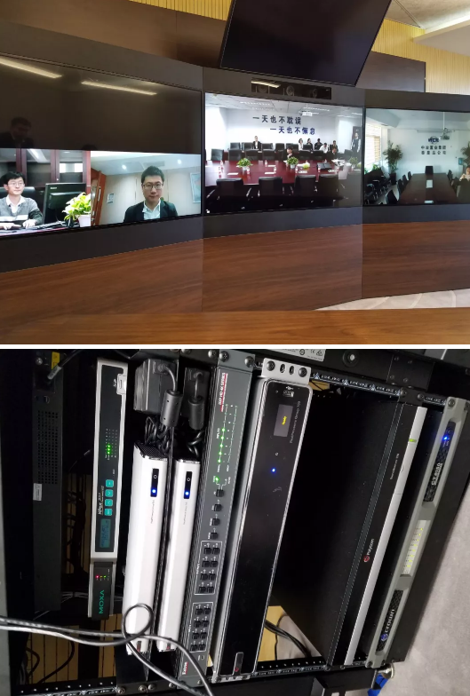 基于甲方要求,其中一个会议室没有配备视频会议终端,主要采用的是鸿合ICB-X6型号的65寸交互一体机和宝利通模拟会议电话终端。另一个采用的宝利通550终端和模拟电话终端,以及特别要求的三星视频会议双显。