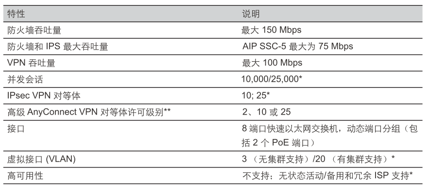 CISCO ASA5525-K8集成多业务千兆硬件VPN防火墙图片参数信息