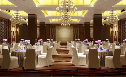 要求可以作为舞台形式会议、宴会使用,也可以在中部摆放成大型的回或凹型会议圆桌式会议,也分割两个会议间,即要求扩音、大屏幕等能分别单独使用,互不干扰,也能整体结合为一个系统使用。