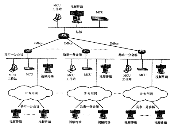 ②:在下面各分公司根据各自下属中支机构数量的不同分别配置17台MCS4200系统MCU,组成一个分层级联的全国性视频会议网络,满足企业日常的视频会议需求。