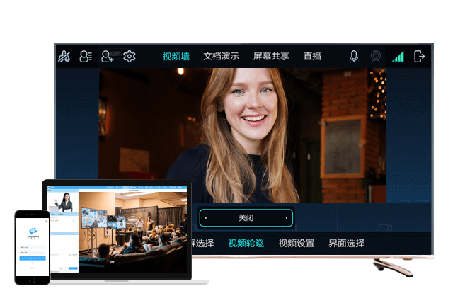 多种会议接入能力,多种会议分屏方式:7X7、5X5、4X4… ,丰富的会议管理功能