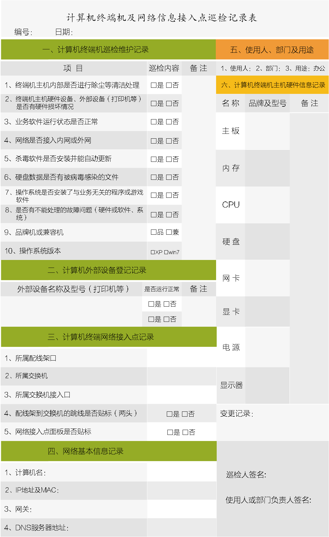 一: 高级工程师每月固定巡检一次。核心:优化整体设备性能,提高工作效率,消除潜在风险。