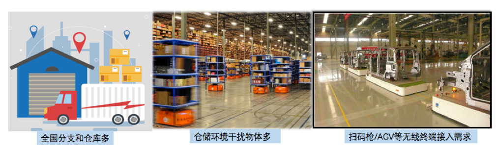 2.仓储物流环境干扰物体多,并且要求无线信号覆盖无死角,零漫游;