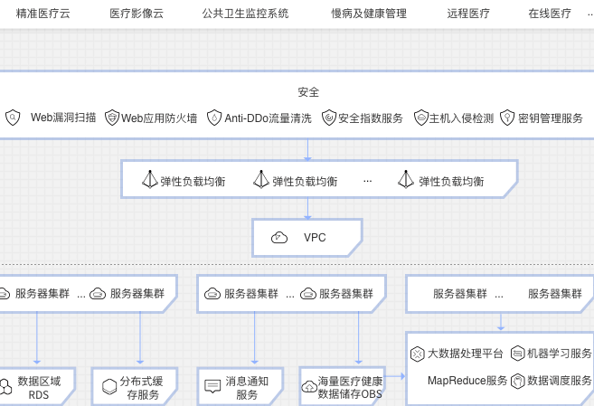 现代医疗云解决方案,覆盖了从医院管理和临床的信息化到相关基础设施(网络、数据中心等)的建设。针对医院不同的应用场景, 华为通过构建以电子病历为核心的医院综合信息平台,提供了移动医疗,远程医疗,基层医疗信息化,慢病管理,综合医疗云等数字医院解决方案,服务于医疗卫生行业。同时,我们开放平台的API,与合作伙伴一起来丰富医疗行业的创新服务。