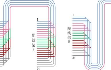 依据图示,在A配线架上双绞线的摆放为1号线最早呈现,其他线按次序出线,摆放规整;在B配线架上为24号线先出线,改为了下出线方法,因为最上层的线悉数掩盖在所有的线上,坚持了一层彻底平坦的斜线,所以在B配线架上照旧漂亮。