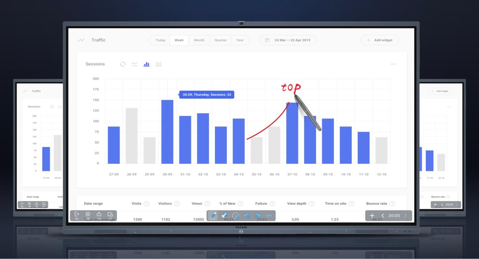 在这些办公方面MAXHUB会议平板对提高会议效率很有帮助,在传统会议上,我们一般都会有印象,与会人员打开电脑,将PPT等文件投影在投影仪上,只有台上的人围绕PPT进行单方面的演示,与会者积极性都不是很高,非常被动。而MAXHUB打破传统低效率的办公方式,采用无线投屏的方式,将工作内容用无线传屏器将使用设备连接,没了台上台下之分,大家就开“圆桌会议“,人人都可以随时分享信息并对所有人共享的内容进行深度讨论(画面切换速度非常快)。与会人员的专注度和积极性提高后,真正利用好了会议时间,在规定时间内就能产生决策,后续执行的效率很高。