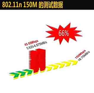 在实测过程中,大部分150M网络设备的速度都在45-55Mbps之间,即5.625-6.875MB/s,相比理论最大速度,水分值高达66%。
