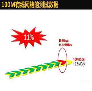 最后是大家最熟悉的100M有线网络,毫无疑问,理论最大值达到100Mbps,即12.5MB/s。