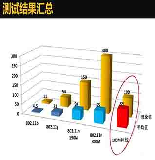 更重要的是,100M的有线网络是交换型网络,两个节点之间独享100M带宽,但无线网络是共享型网络,实际速度会受到AP所连的客户端数据的增加而降低。