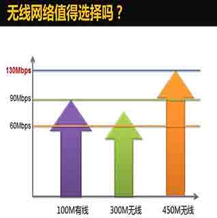 虽然无线网络的理论传输速度有很大的水分,但我们看到无线网络覆盖与有线网络的差距正在缩小,目前300M无线路由已经可以提供超过60Mbps的实际无线传输速率,相比有线网络90Mbps的表现,差距并不明显,即使是通过无线网络观看高清视频,它也可以胜任;而随着450Mbps无线产品的上市,无线网络的实际速率将达到130Mbps。
