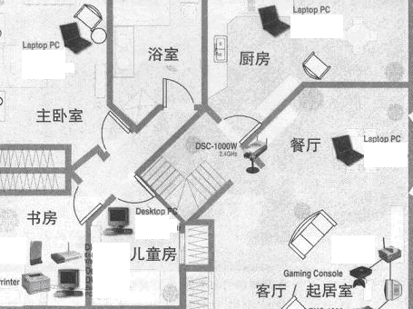 为了避免无线信号遭受到外来障碍物的干扰,你可以在安装无线AP时,尽量将它的位置安装得高一些。由于无线AP的信号覆盖范围呈圆形区域,为了确 保与之相连的每一台无线工作站都能有效地接受到通信信号,你最好应该将无线 AP放在所有工作站的中心。