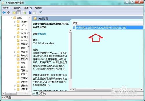 3、然后把“末设置”改成“已启用”,确定直接退出就可以了。重新启动下电脑,以后关机就再也不会出现强制关机页面了,系统会自动关闭未关闭的软件程序安全退出关机。
