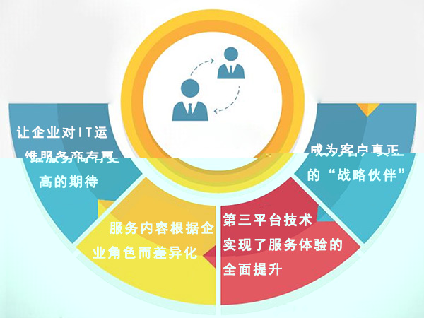 传统IT运维服务主要停留在技术驱动和业务驱动层面,然而第三平台的新兴技术,使得IT运维服务已经跳出了传统范围,让服务体验成为了实现差异化的关键因素。对于客户体验驱动的运维服务来说,技术和业务是服务的前提,而客户体验才是发展服务的关键。其理念是通过服务促进业务,让客户可以深切感受每一步的进展和变化,对最终结果有清晰的认知和预估,并且对今后的服务抱有更高期望。