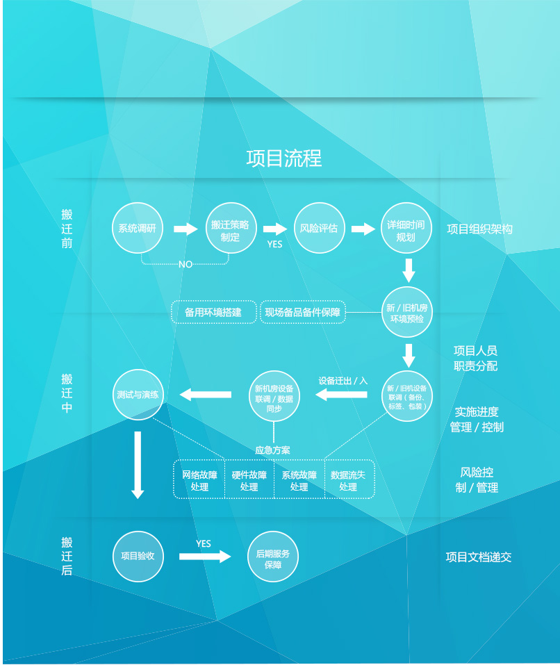 云烁经验丰富的搬迁项目经理进行项目勘察、周密组织、高效实施。 完备的搬迁方案,确保用户系统平滑迁移。